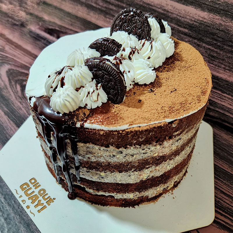 Bizcocho de chocolate, relleno de exquisita crema de galleta de oreo.