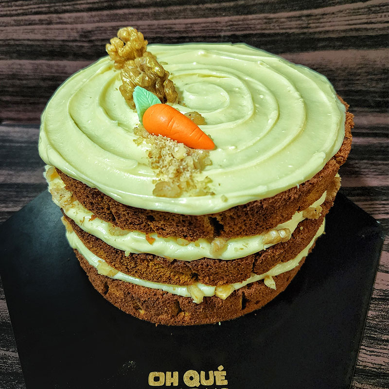 Bizcocho de zanahoria y nuez relleno de crema suiza.